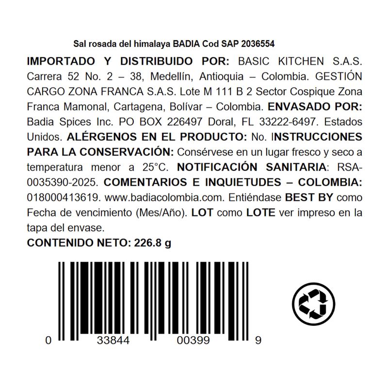 MercadoAbarrotes DespensaSalSal Rosada De Himalaya Badia x 226.8 g