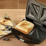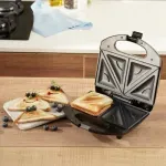 Prepara sanduches en triangulo marcados con sonrisa, comparte tus preparaciones y regala alegría en cada bocado .Disfruta de sanduches doraditos en tan solo 4 minutos, su recubrimiento antiadherente facilita la limpieza la limpieza de tu producto y evita que los alimentos se peguen.