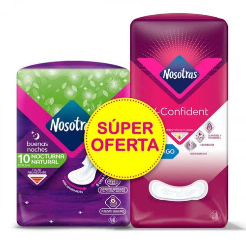 Toalla Nosostras Buenas Noches x 10 + Protectores V-Confi x 24 und