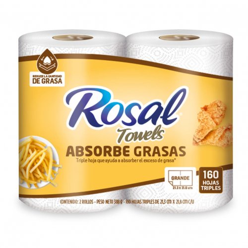 MercadoAseo HogarLimpieza de SuperficiesToalla Rosal Absorbe Grasas Triple Hoja x 2 Rollos x 160 Hojas
