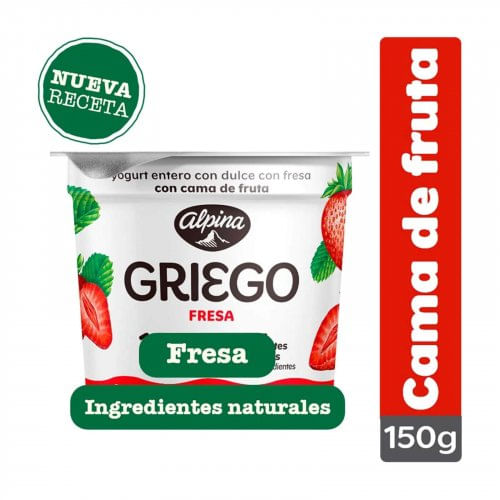 MercadoLácteos Huevos y RefrigeradosYogurt y Bebidas LácteasYogurt Griego Alpina Cama De Fruta Fresa x 150 g