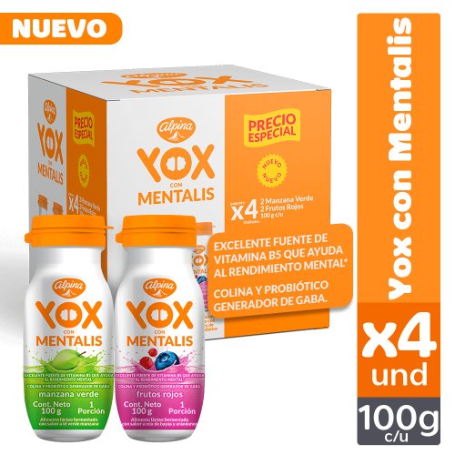 Yox Alpina Mentalis Manzana Verde + Frutos Rojos 4 x 100 g